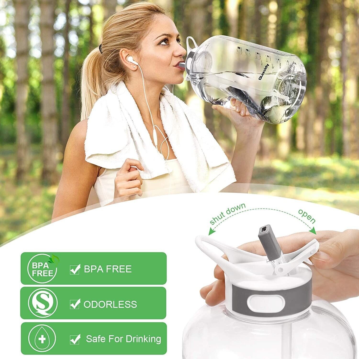 1 Gallon BPA FREE 2 In 1 Water Bottle GYM with Straw RRP £22.99