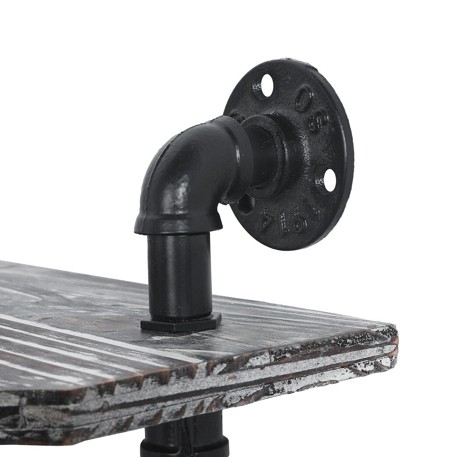 3 Tier Rustic Torched Wood Corner Display Shelves w/ Industrial Metal Pipe Frame