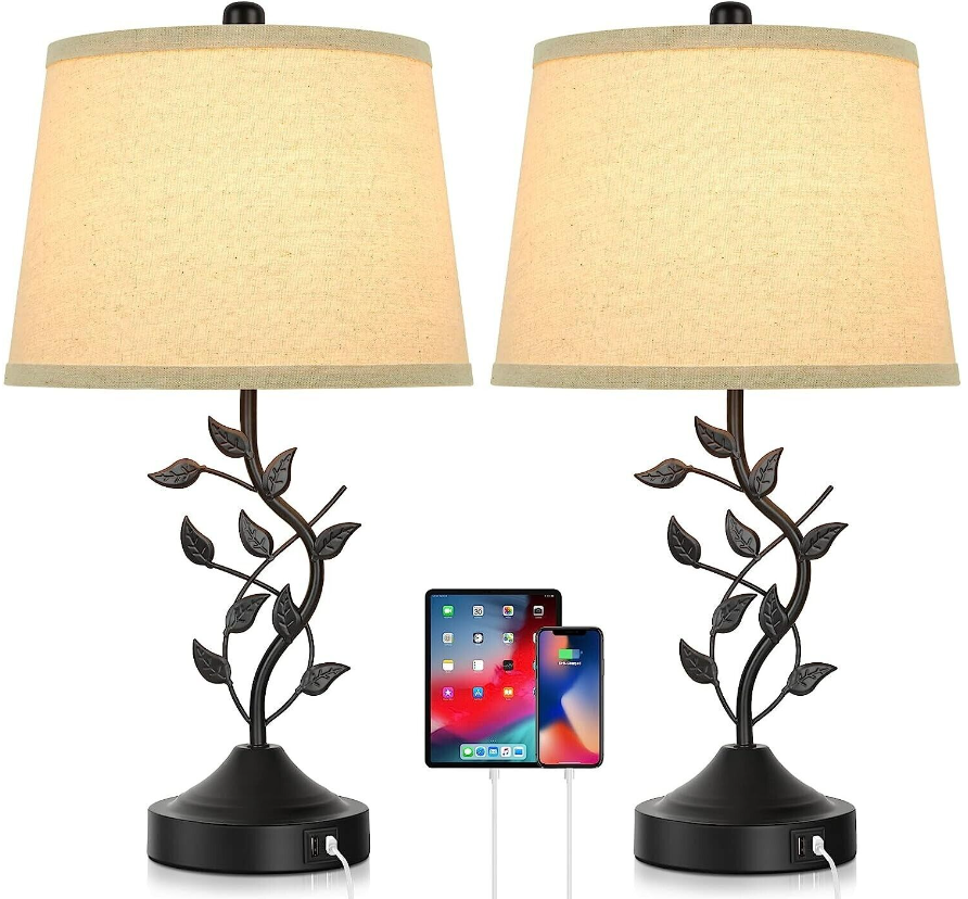 • ❤【Bedside Lamps with Dual USB Ports】The two built-in USB fast charging ports(5V/2.1A) on the lamp base are definitely an added bonus. You can easily charge your cellphone, laptop or other electronic devices within arm’s reach using a small cord, thus leaving your side table tidier without all the extension sockets and plugs. The charging function works whether the lamp is on or off, which is practical when you want to power up your cellphone overnight.