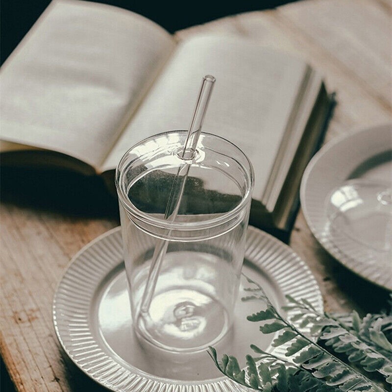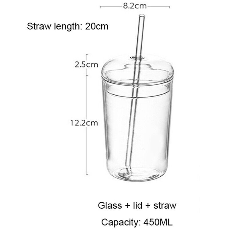 450ml Glass Cup With Lid and Straw Transparent Tea Coffee Cup Juice Glasses Mug