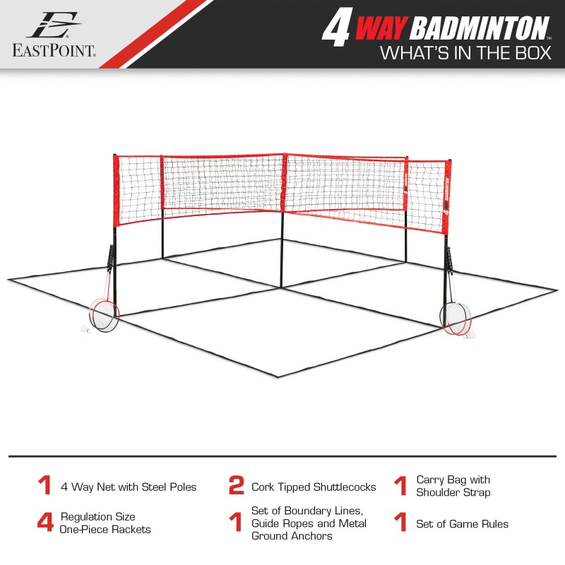 Badminton Set Indoor and Outdoor Play Durable 4-Way Badminton Net Set