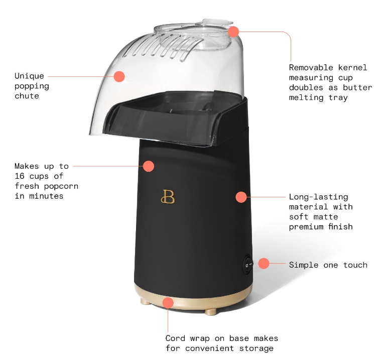 Beautiful Hot Air Popcorn Maker, Black Sesame by Drew Barrymore