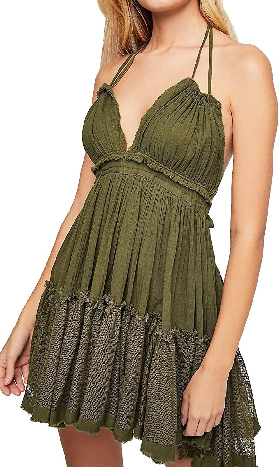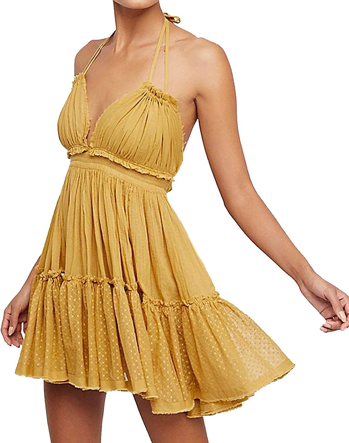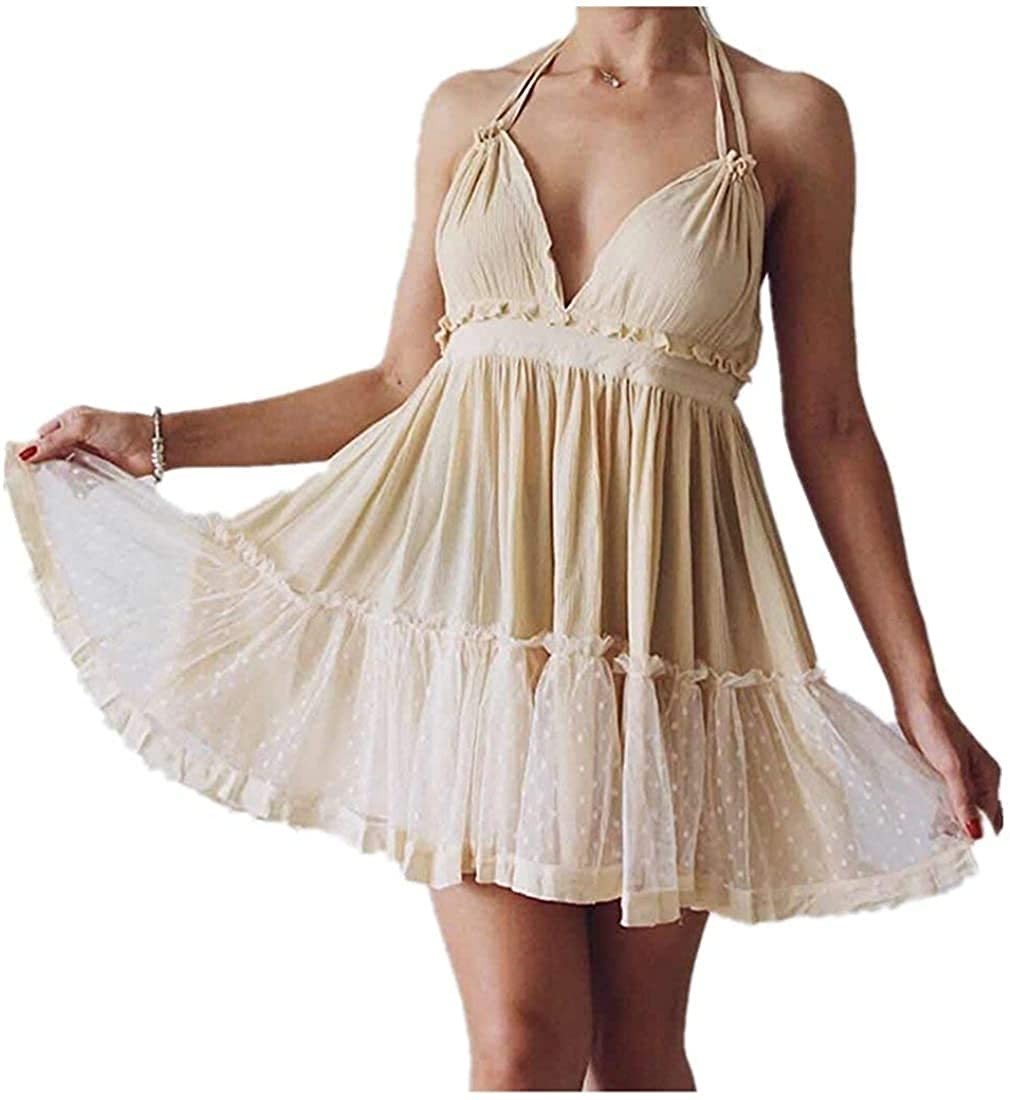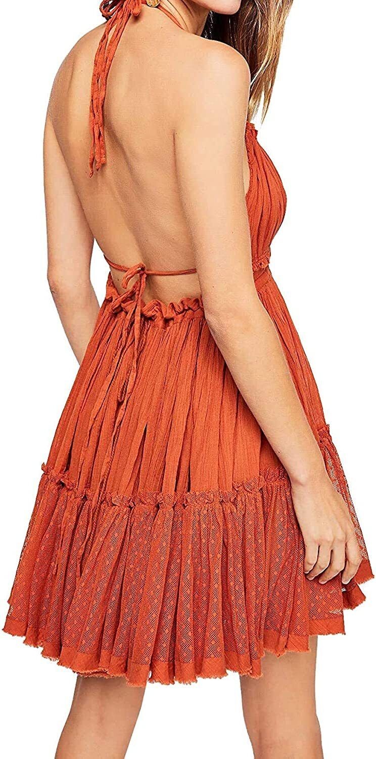 ForeMode Summer Deep V Neck Bohemian Women Mini Short Dress Backless Beach Boho