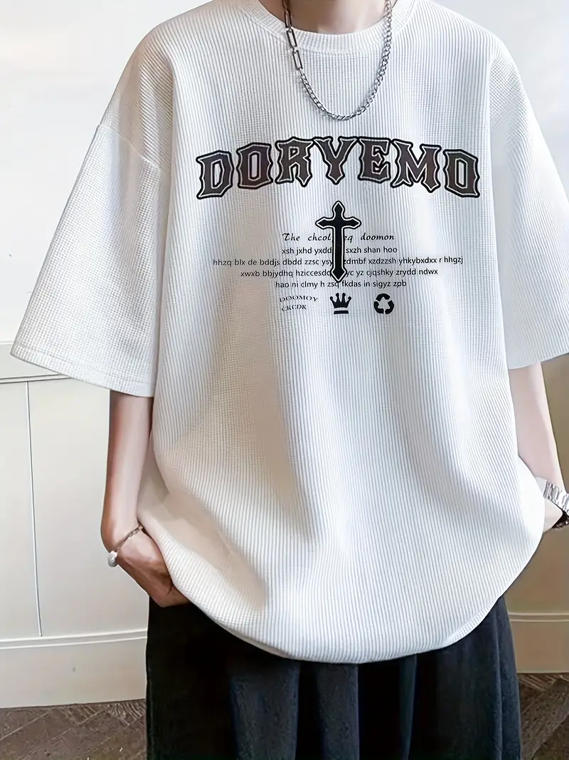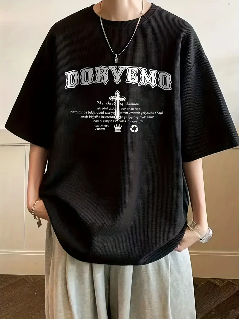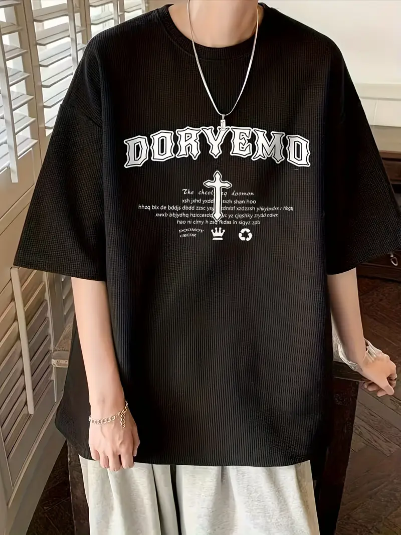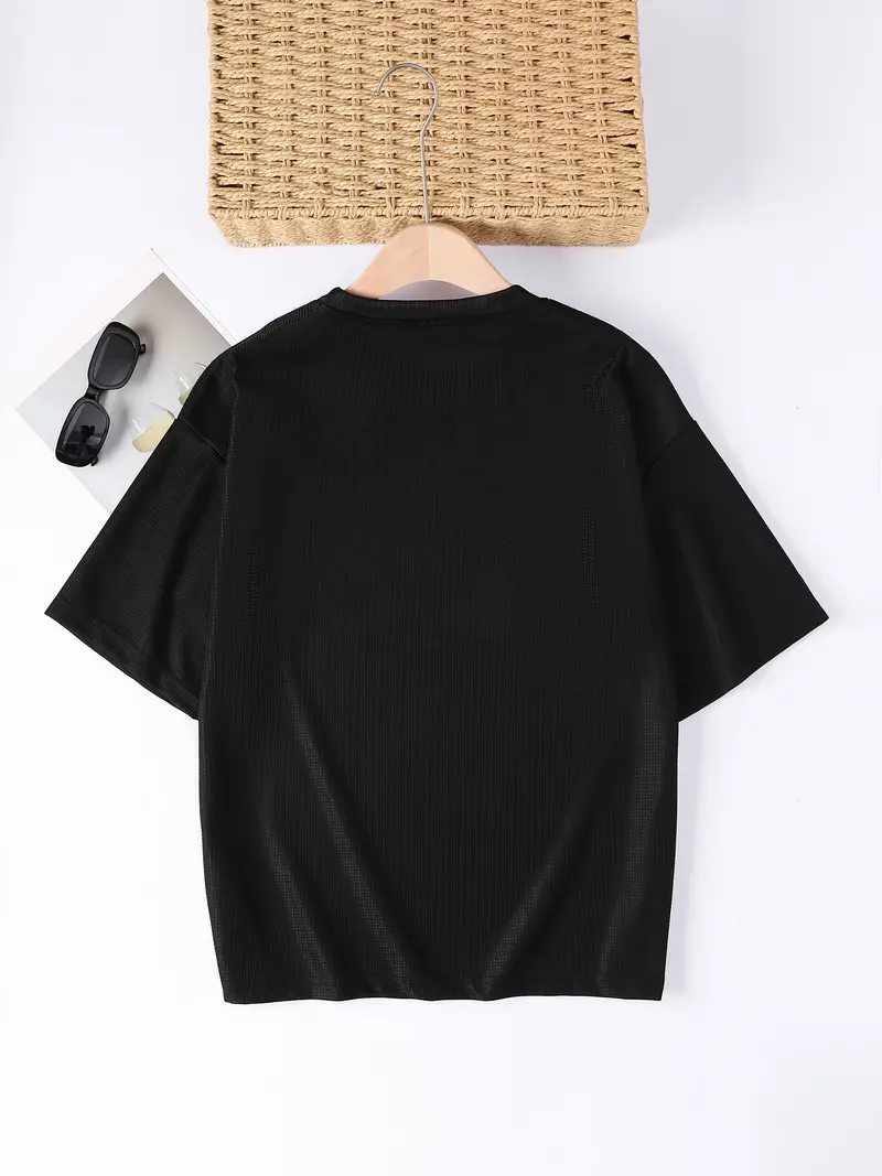 Plus Size Men's Casual Streetwear Tops Solid Textured Fashion Loose Drop Shoulder T-shirts