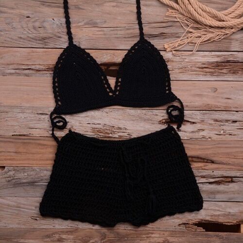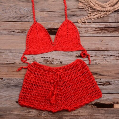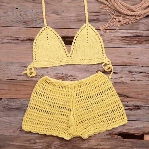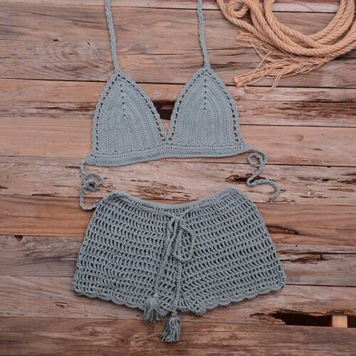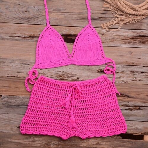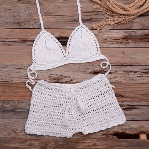 Handmade Crochet Two Piece Set Women's Summer Beach Bikini Sexy Swimsuit Outfit