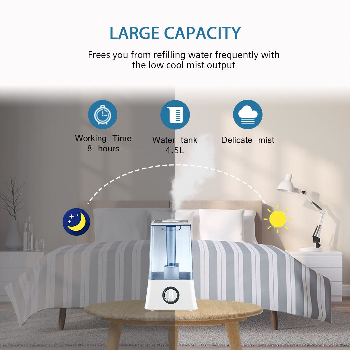 Hodiax Quiet Ultrasonic Humidifier 2-in-1 Diffuser Cool Mist Maker Whole House