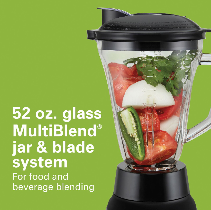 • BLEND FOOD & BEVERAGES IN 52 OZ. GLASS MULTIBLEND? JAR: The large Multi Blend? Jar and Blade System is perfect for blending both icy drinks, like fruit smoothies and protein shakes, and for prepping foods like soups, dips, batters, dressings and sauces.