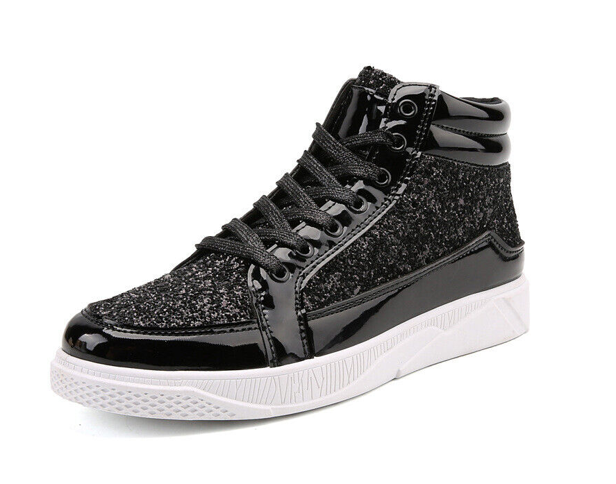 Mens Sequin Ankle Boots Flat Lace Up High Top Shiny Casual Fashion Trend Shoes | Etsy