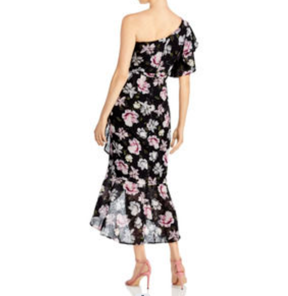 One-shoulder mini skirt with ruffles in water red