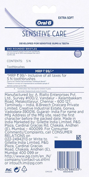 Oral B Sensitive Care Toothbrush, Extra Soft (Pack of 5)