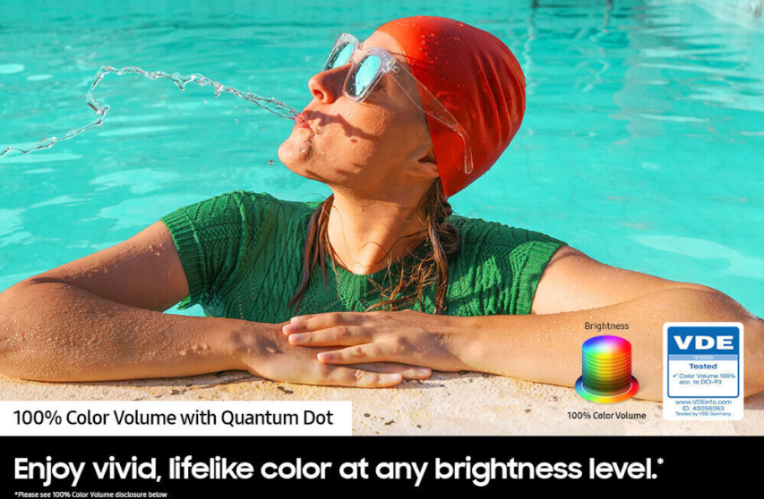 Max out your experience with 100% Color Volume. Take in a billion shades of unwavering color and enjoy vivid, lifelike color at any brightness level as Quantum Dot technology works to create every shade you see on screen.