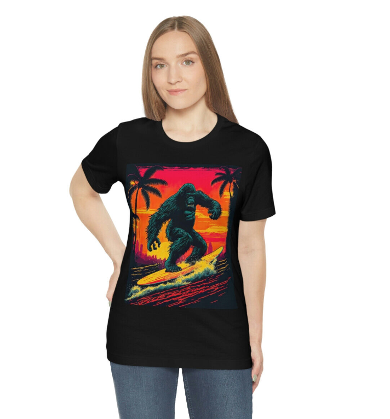 SURFING GORILLA Unisex Short Sleeve SURF Tee T-Shirt Beach Surfer Retro Vintage