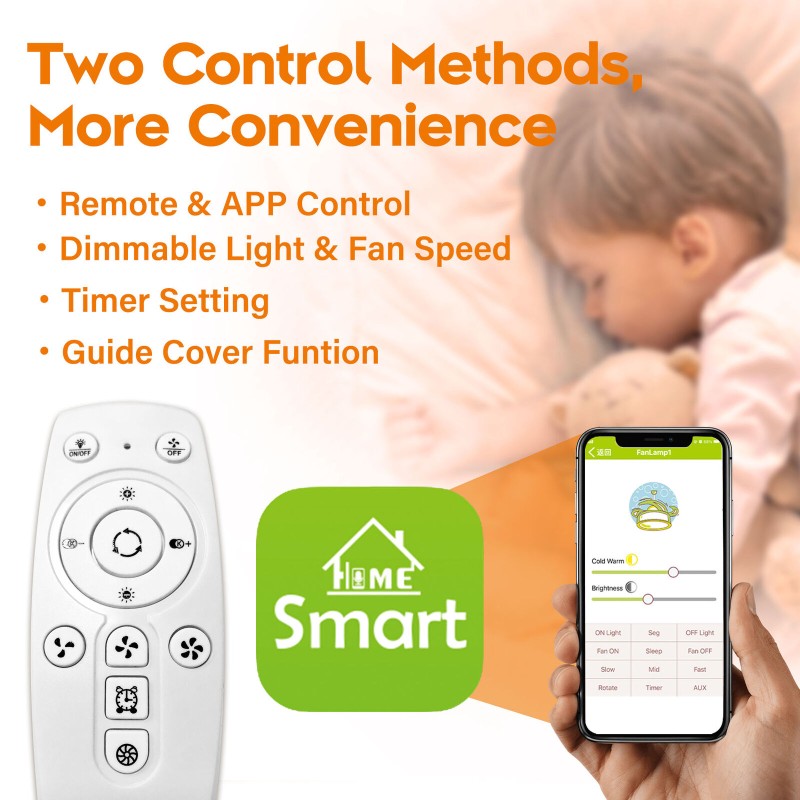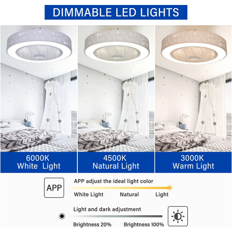 TCFUNDY 22" LED Ceiling Fan with Light APP & Remote Control Ceiling Light Fan