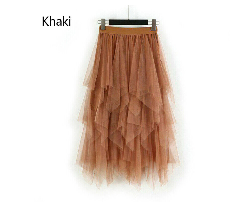 Product Name: Women Tulle Mesh Skirt Product Category: Skirt Color: White, Black, Pink, Khaki, Gray, Apricot Material: Mesh Size: Free Size: Length 82cm, Waist 62-102cm, Lining 45cm Packing: Opp Bag Packing List: Tulle Mesh Skirt x 1