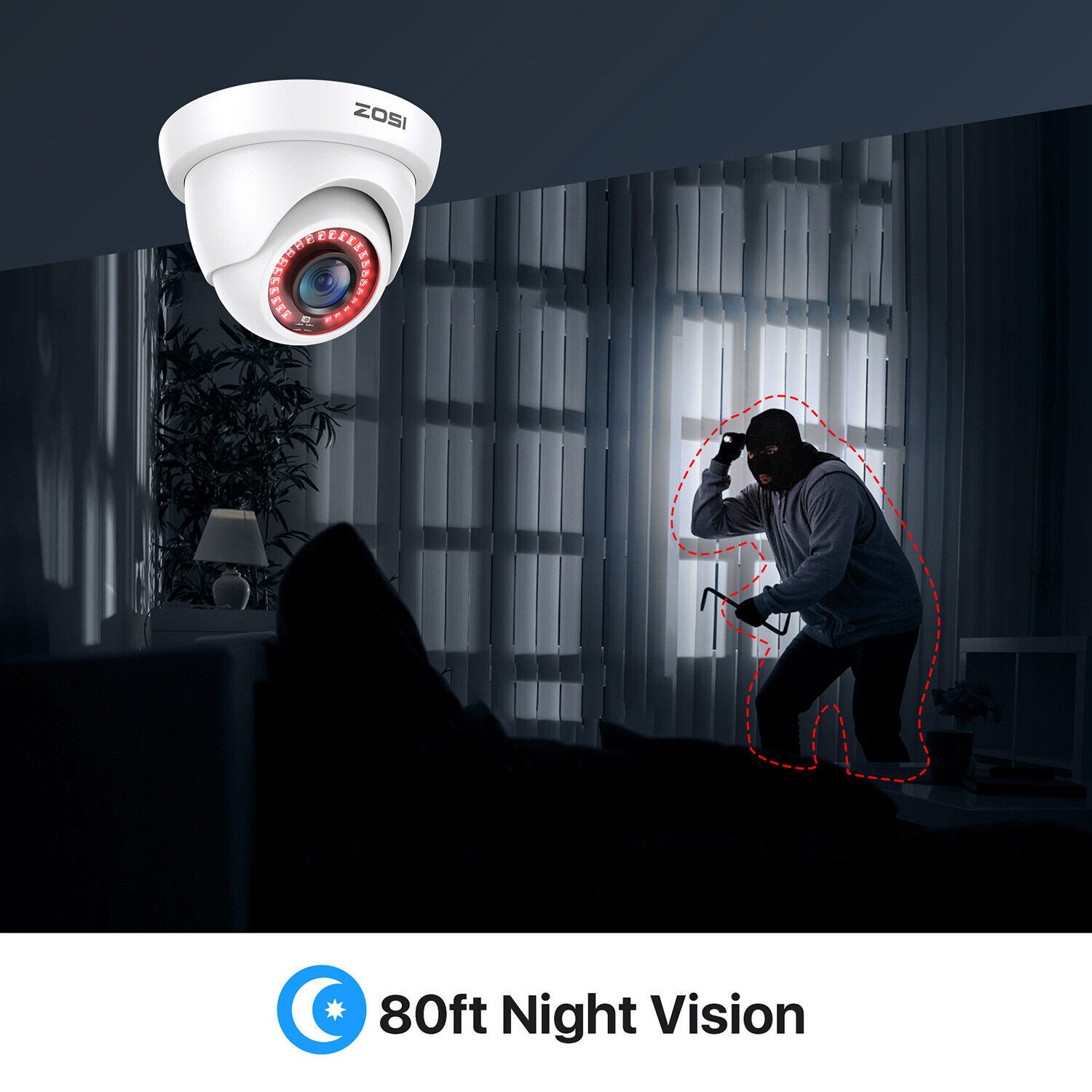 ZOSI 2MP 1080P HD 4in1 Home Dome Security Camera Night Vision Outdoor CCTV IP66